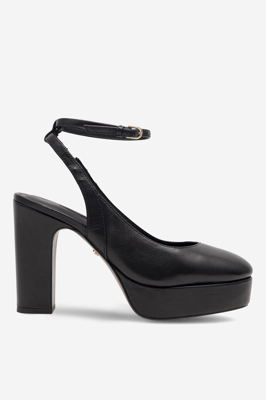 Czółenka skórzane na słupku i platformie